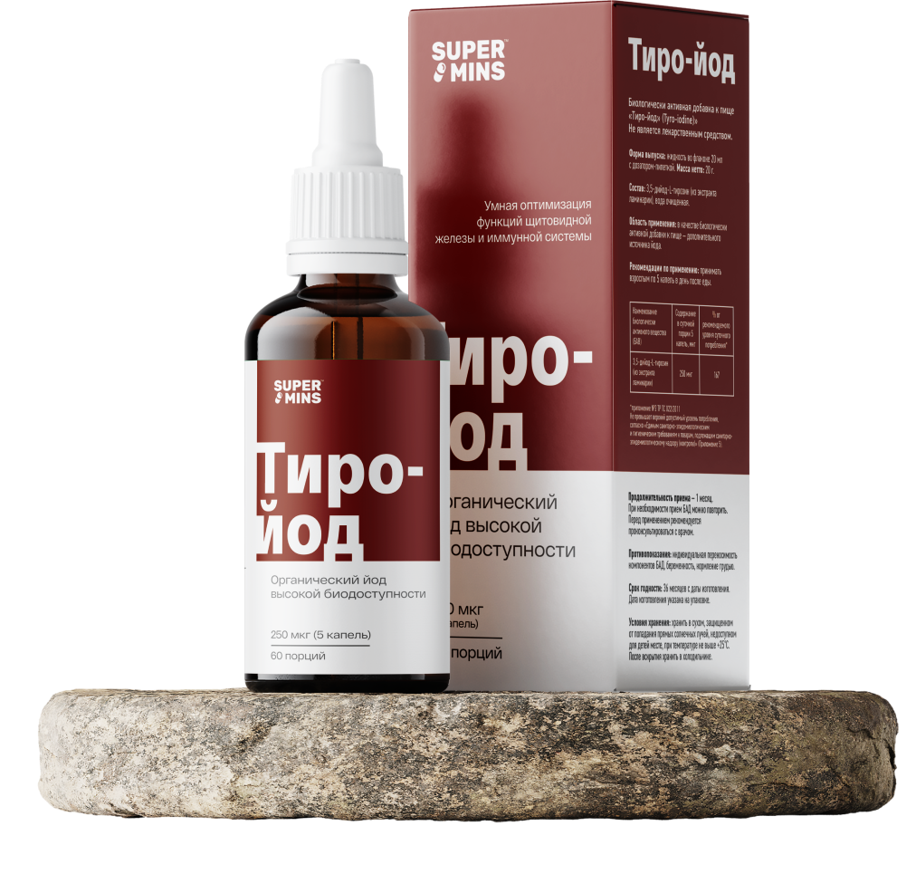 • 3,5-дийод-L-тирозин - это йод в устойчивой органической форме, в соединении с тирозином, аналогично соединению в природе - в морских водорослях, ламинариях. В такой форме усвоение йода происходит наиболее эффективно. Йод помогает поддерживать когнитивные функции, выработку энергии и скорость обмена веществ, участвует в регуляции правильной работы щитовидной железы, иммунной системы, молочных желез и простаты.